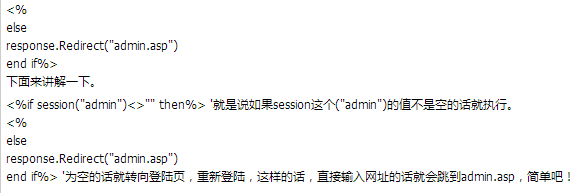 在<%@LANGUAGE="VBScript" codepage="936"%>這句的后面加上<%if session("admin")<>"" then%>這句,在末尾寫上: