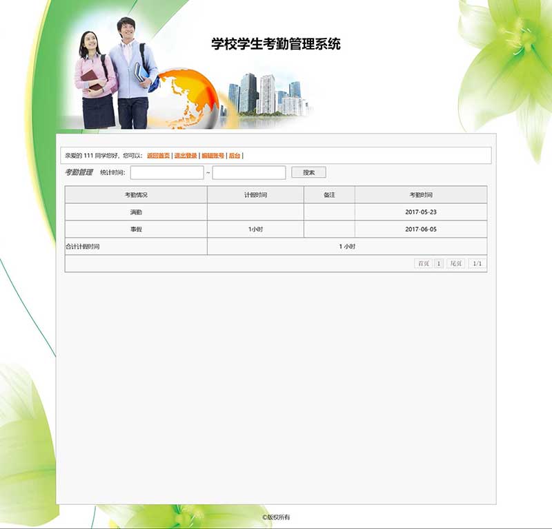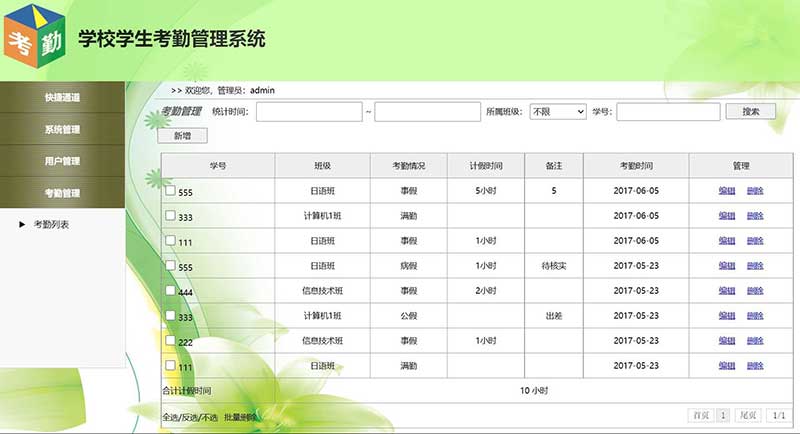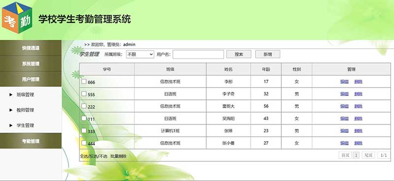 學生PHP考勤管理系統動態網站采用php+mysql開發,系統設計了5個數據庫表,表之間有聯系,字段設計合理;增刪改查一應俱全,有批量刪除功能;系統采用原生php代碼編寫,utf8編碼,無框架,面向過程,充分考慮到大學生網頁畢業設計實際水平,代碼容易理解;