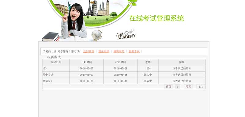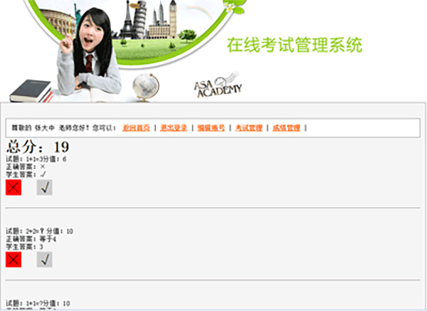 用戶角色有管理員、教師、學生三種,管理可以發布試題庫,管理教師和學生。教師可以添加考試,并從試題庫里自動組題。支持選擇題、填空題、問答題、判斷四種題型。客觀性試題(選擇題和判斷題)可以自動閱卷,其他題型手動閱卷,學生登陸系統,未開始或已結束的考試,學生不能參加...