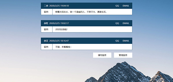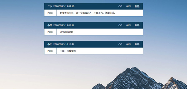 學(xué)生簡單留言板動態(tài)網(wǎng)頁課程作業(yè)系統(tǒng)由Asp+Access數(shù)據(jù)庫制作完成,頁面插入了背景圖片,在任何分辨率下都可以保持全屏,主題窗口寬度為700PX。