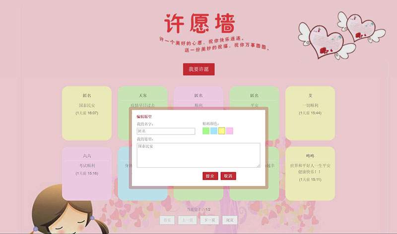 php許愿墻代碼 php制作許愿墻網頁設計 大學生PHP MYSQL畢業設計網站作品源碼下載