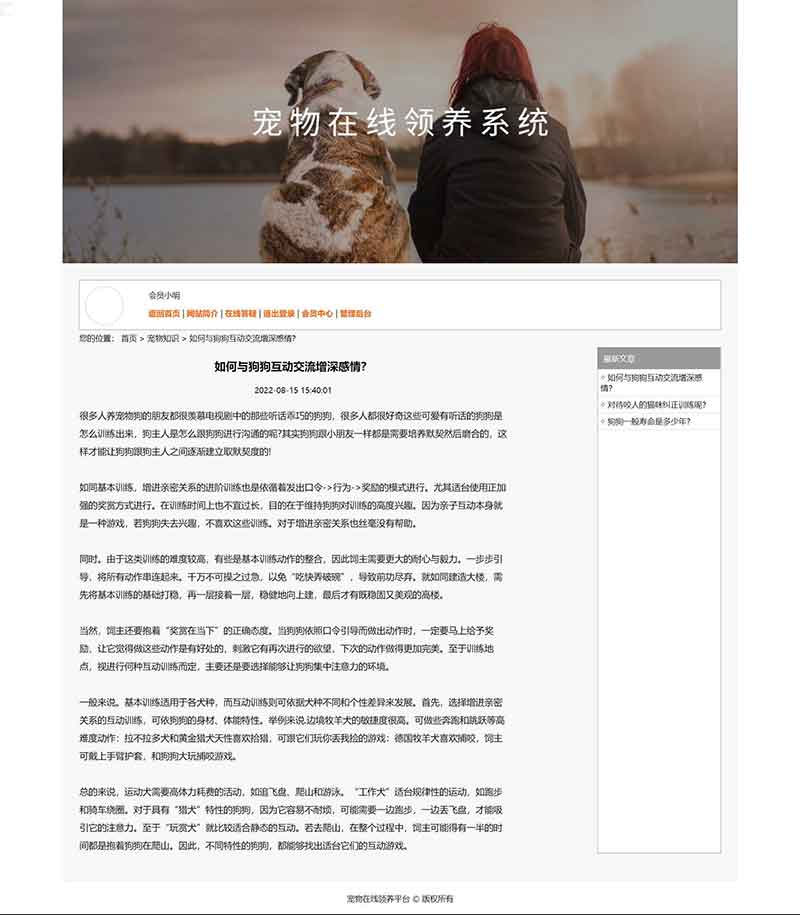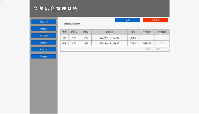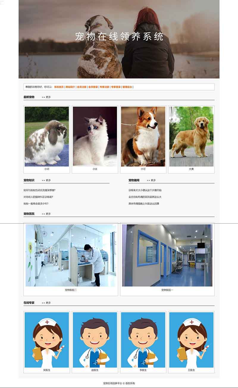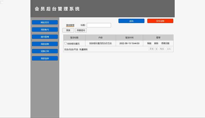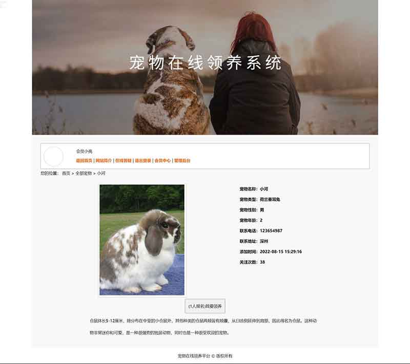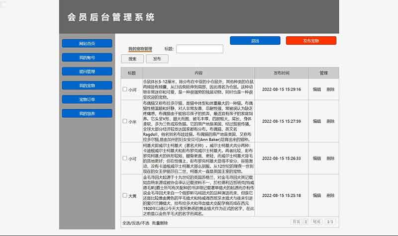 會員:注冊登錄后可以發布寵物,領養寵物,發布提問等操作。