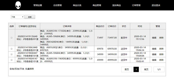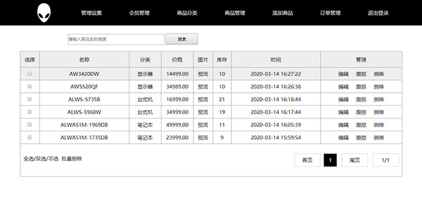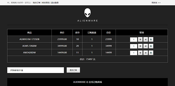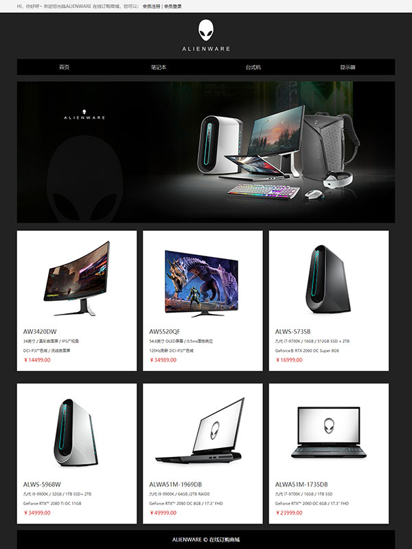 此PHP網(wǎng)站作業(yè)主題為ALIENWARE外星人網(wǎng)上商城,采用PHP MYSQL開發(fā)制作。數(shù)據(jù)庫共6個數(shù)據(jù)表(商品、商品分類、會員、管理員、訂單、購物車)前端及后端均為黑白色調(diào),寬屏設(shè)計頁面寬度為1200PX,功能方面全面包括增刪改查、多角色、注冊登錄、訂單系統(tǒng)等,基本涵蓋一個購物網(wǎng)站的全部功能,程序結(jié)構(gòu)簡單易懂,適合大學(xué)生用于畢業(yè)設(shè)計、課程設(shè)計或大作業(yè)。