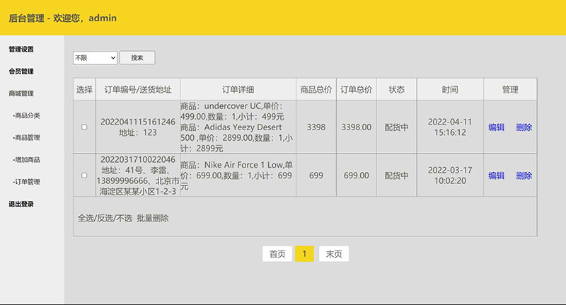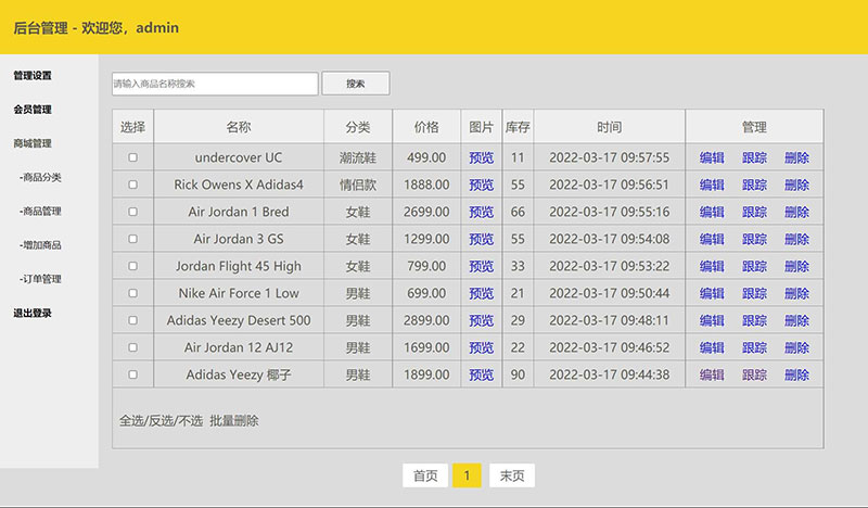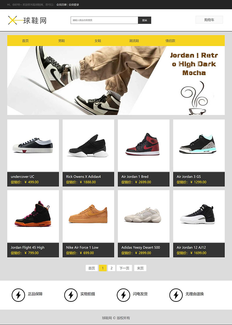 大學生PHP畢業設計——潮流球鞋商城網站作品采用PHP MYSQL制作,功能包括商品系統、會員系統、訂單系統、購物車。包含基本的增刪改查、數據分頁功能。整體設計干凈簡潔,前端與后端風格統一,采用大學生PHP水平制作。