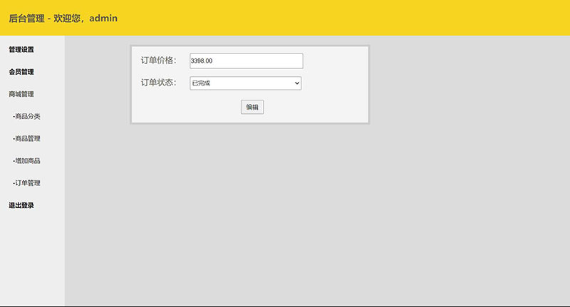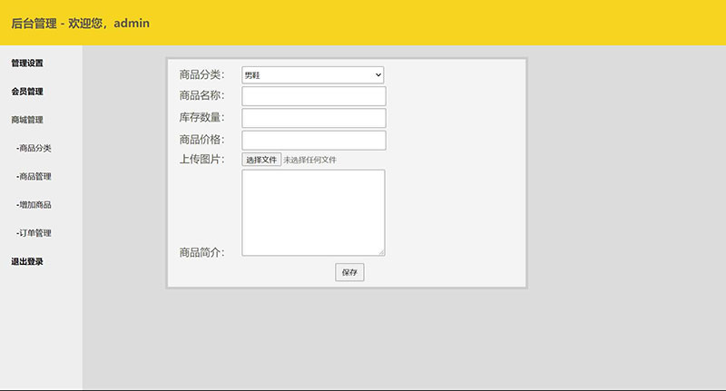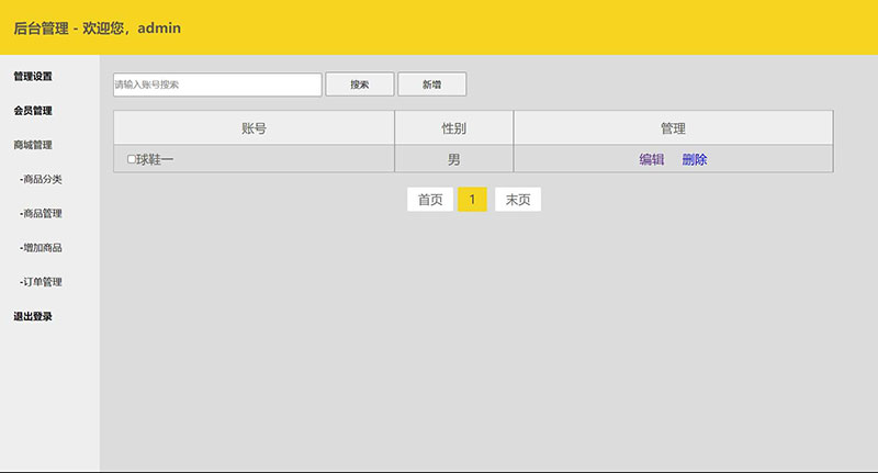 用戶系統支持兩個角色,分為管理員和普通用戶。管理員新增及編輯刪除在后臺完成,普通用戶在前端可自行注冊登錄。普通用戶功能:注冊、登錄、修改密碼、購物車、我的訂單。管理員功能:管理員管理、普通用戶管理、商品管理、訂單管理。