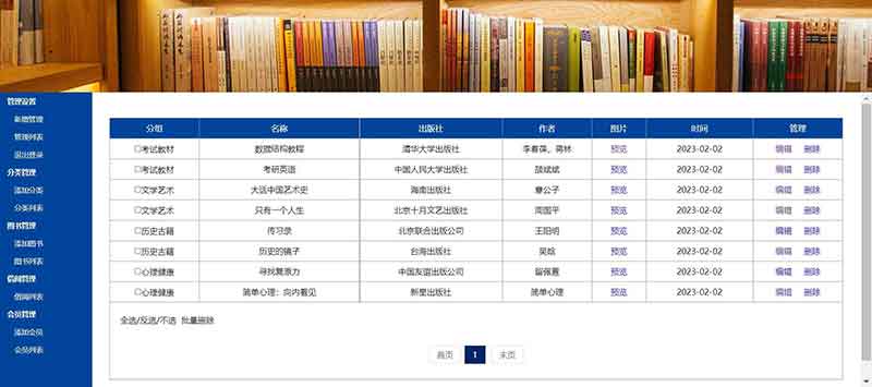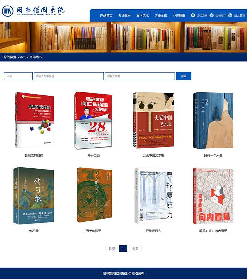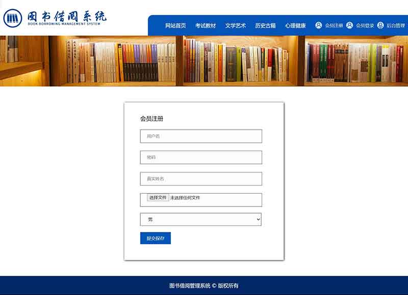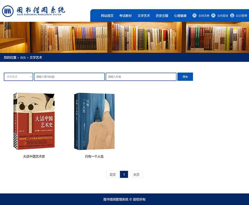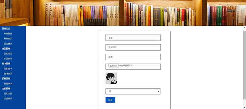 前端功能:搜索、注冊、登錄、編輯、頭像,會員登錄后可借閱圖書。