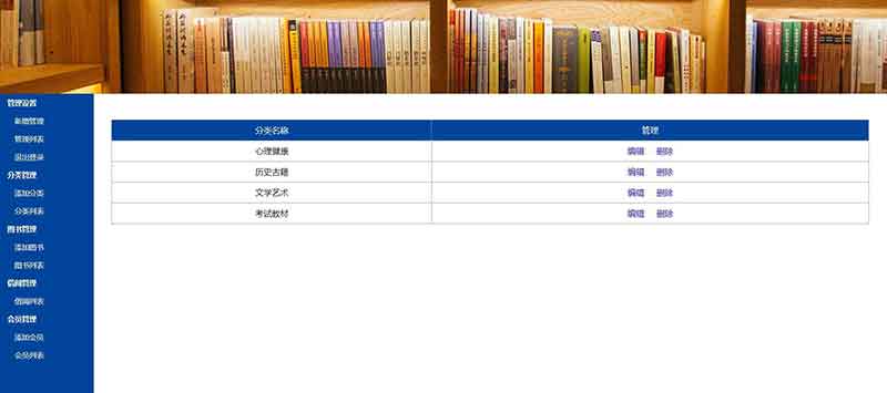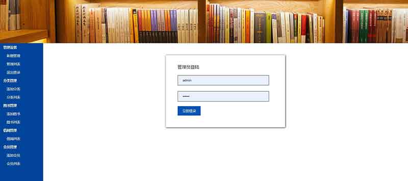 管理功能:登錄、新增管理員、圖書分類管理、圖書管理,審核借閱、完成還書審核等。
