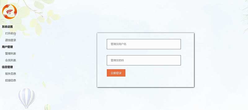 管理功能:登錄、新增管理員、管理會員信息、管理及刪除會員發(fā)布的失物信息。