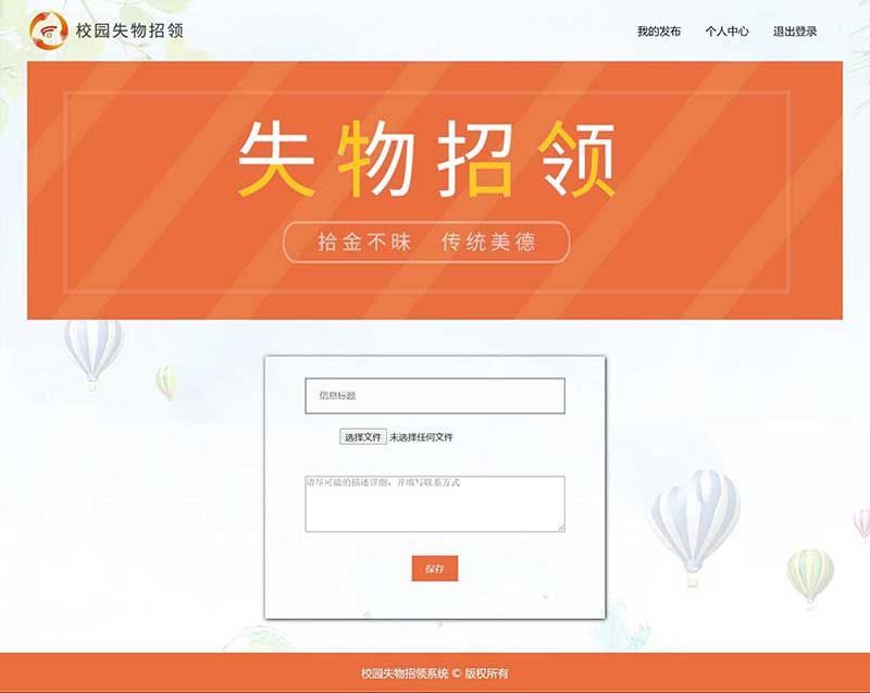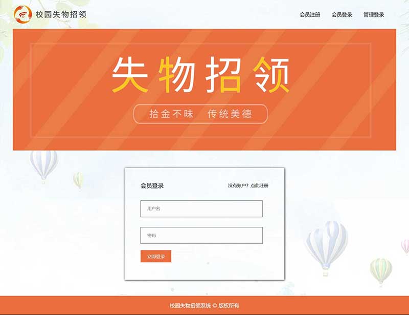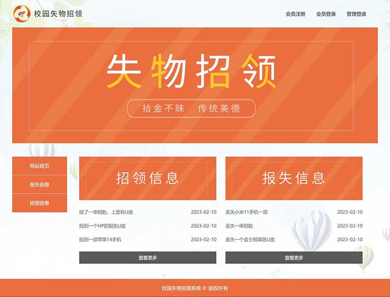 PHP MYSQL校園失物招領(lǐng)網(wǎng)站成品為大學(xué)生PHP畢業(yè)設(shè)計水平手寫代碼未基于任何框架,功能方面包括:注冊、登錄、增刪改、搜索。數(shù)據(jù)庫有四張數(shù)據(jù)庫表(會員表、管理員表、招領(lǐng)信息表、報失信息表)