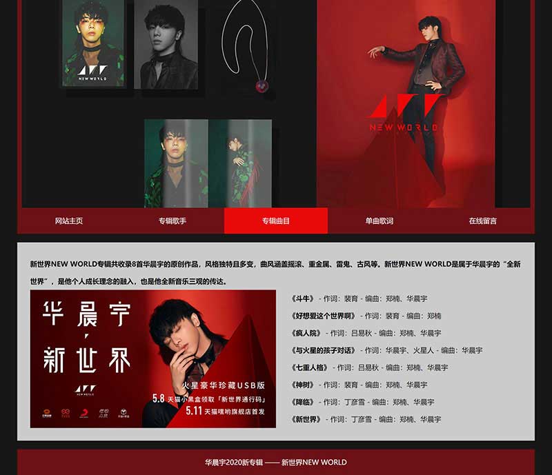 華晨宇新世界音樂專輯網站設計制作 明... ¥50