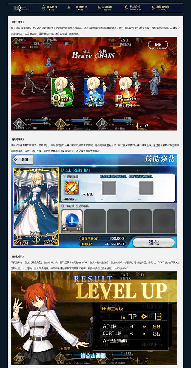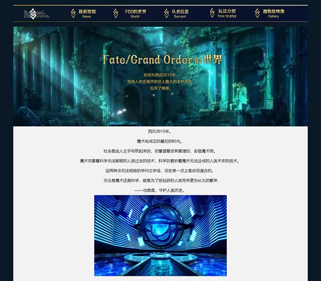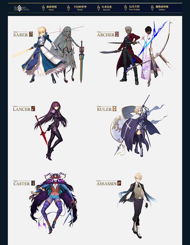 本作品為游戲網頁設計,題材為Fate系列FGO手游成品。共6頁。無特效,DIV CSS 布局制作。有視頻(MP4頁面)。