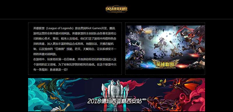英雄聯盟LOL學生網頁設計課程日常作業作品采用DIV+CSS布局設計制作簡單頁面,作品共一頁,簡單做了CSS樣式,適用于DW初學者使用。