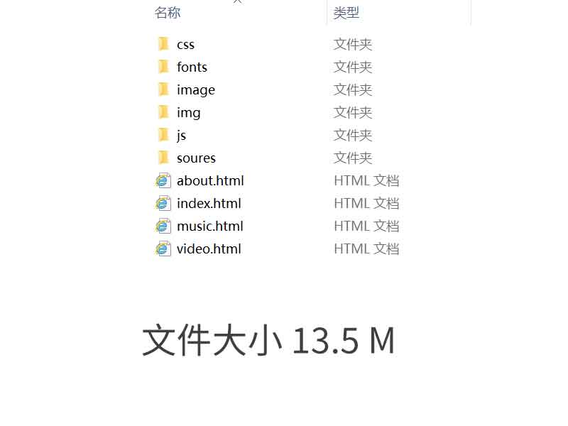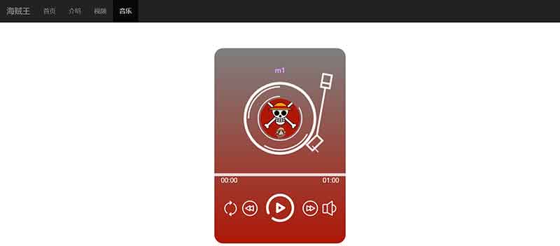 首頁有輪播大圖和圖片列表板塊,介紹頁面為基礎(chǔ)圖文內(nèi)容,視頻頁面使用H5標(biāo)簽插入視頻,音樂頁面為音樂播放器頁面,點擊可以在線播放音樂。