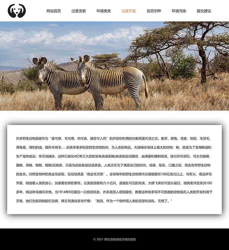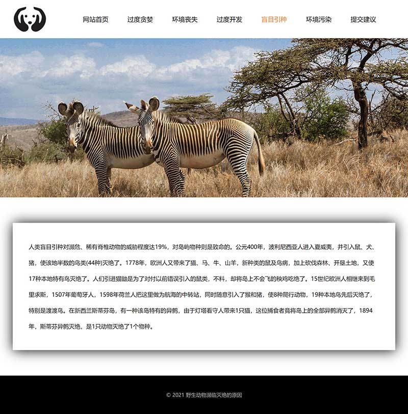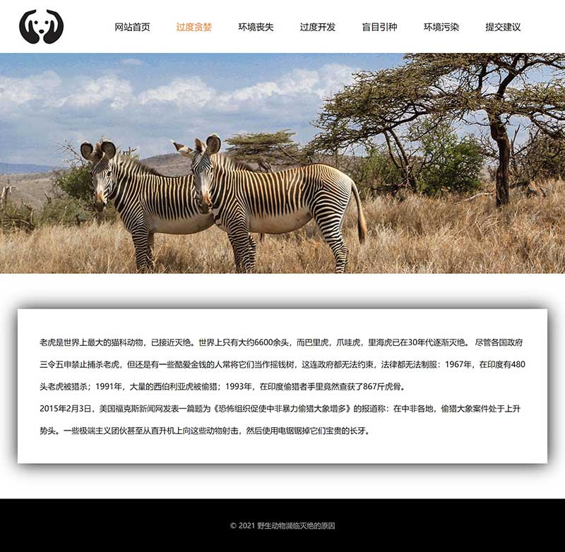 保護動物網頁制作成品 動物保護網頁模板作業 學生動物滅絕原因網站代碼