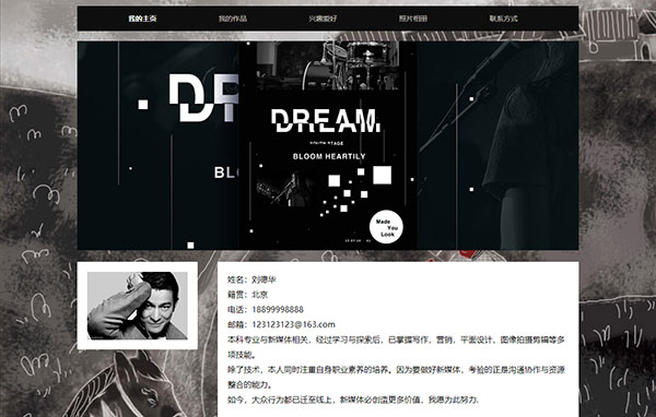 大學生個人主頁模板 簡單個人網(wǎng)站制作... ¥20    個人博客網(wǎng)頁 | 抗疫健康網(wǎng)頁 | 保護動物網(wǎng)頁 | 寵物花草網(wǎng)頁 | 家鄉(xiāng)旅游網(wǎng)頁 | 人物明星網(wǎng)頁 | 節(jié)日環(huán)保網(wǎng)頁 | 影視音樂網(wǎng)頁 | 校園班級網(wǎng)頁 | 動漫游戲網(wǎng)頁 | 文學文化網(wǎng)頁 | 電子商務網(wǎng)頁
