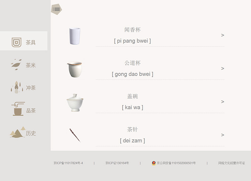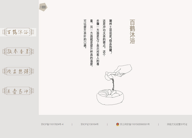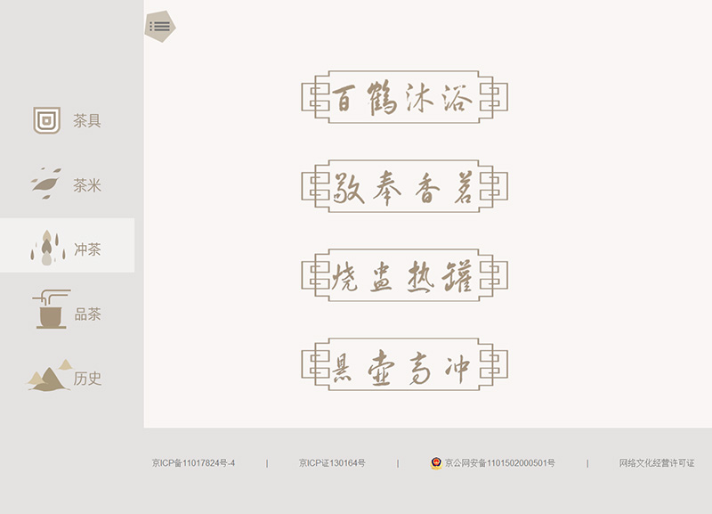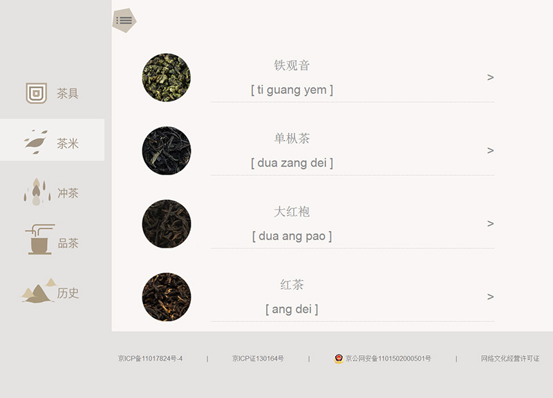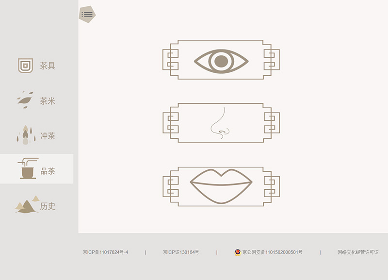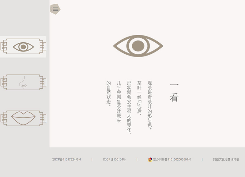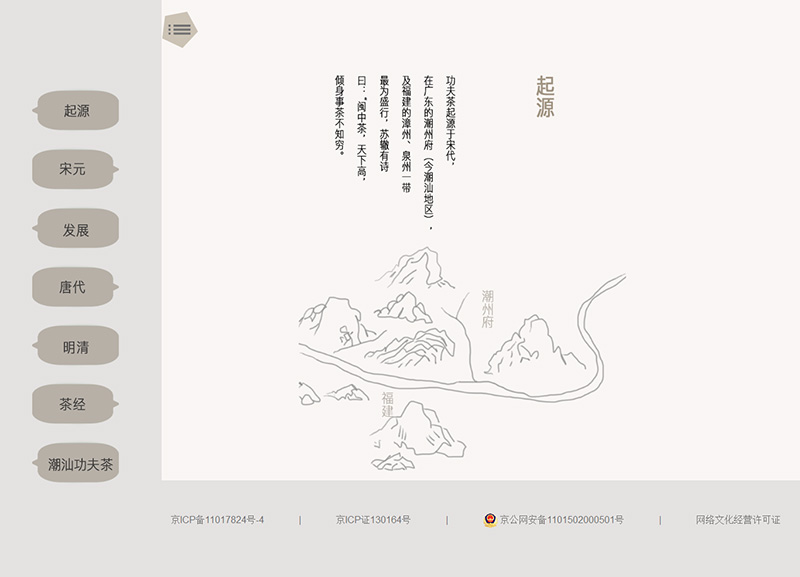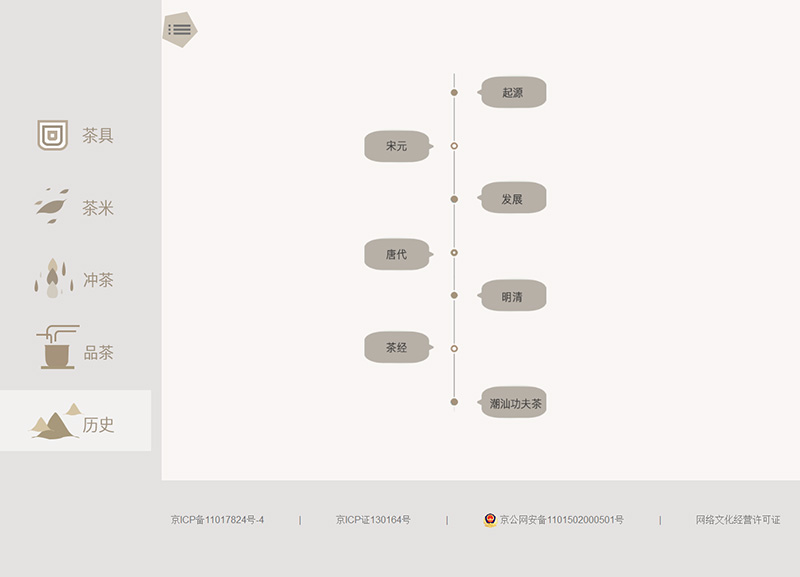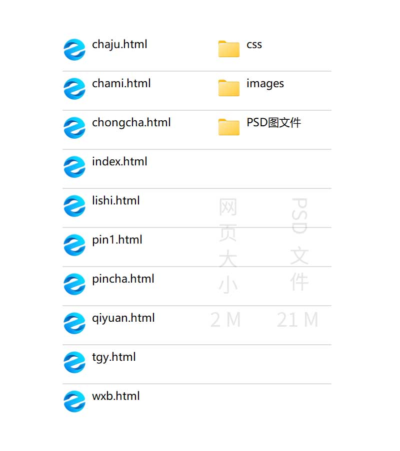 大學生茶文化網頁制作成品,使用div+css布局制作,共11個頁面三層結構,包括1個首頁、5個二級頁面、5個三級頁面。有每個頁面的PSD設計原稿。內容涵蓋了茶具、茶米、沖茶、品茶、歷史等內容。頁面設計精美。多種布局,無特殊網頁效果。若不需要PSD設計圖文件,可直接刪除,不影響網頁運行。