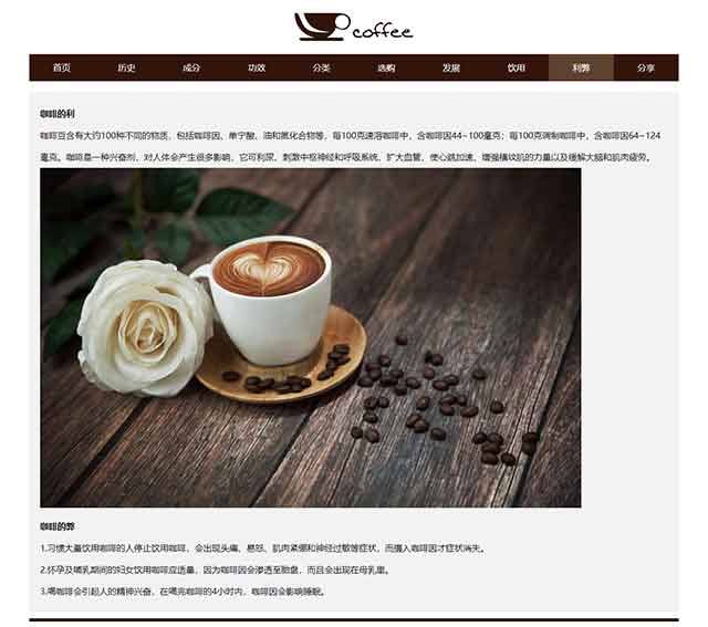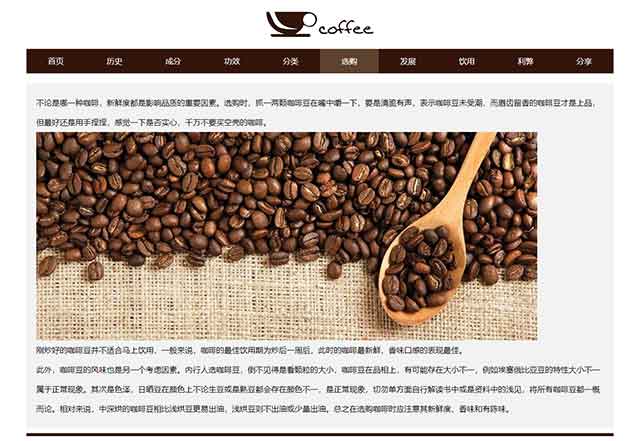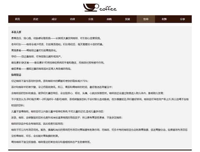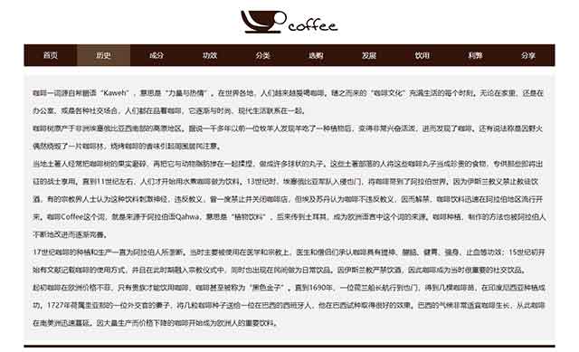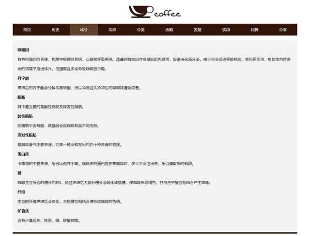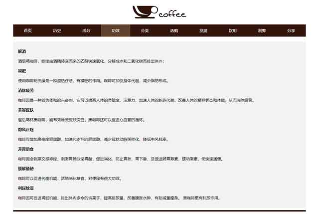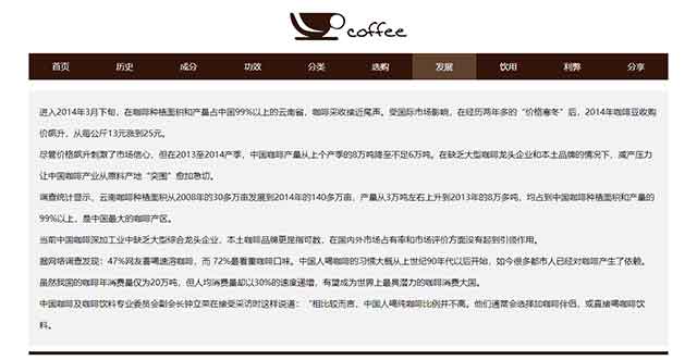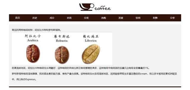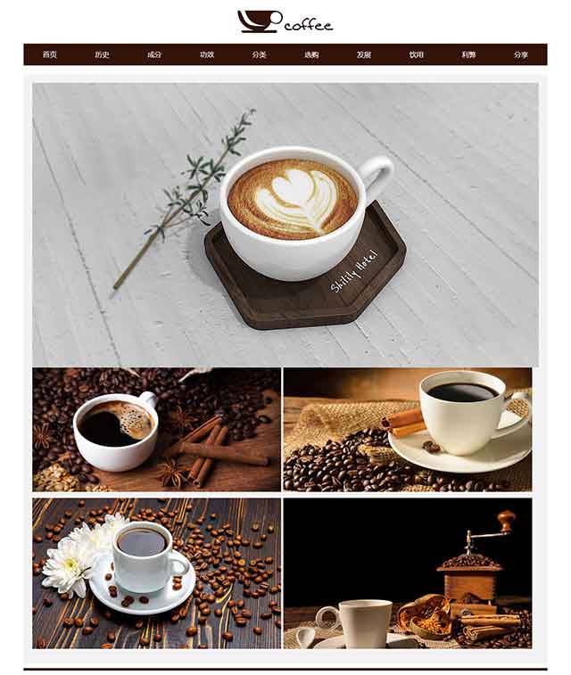 咖啡主題大學生網頁設計作品,共10個頁面,無任何復雜技術及特效。