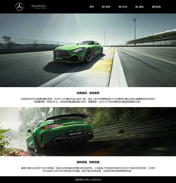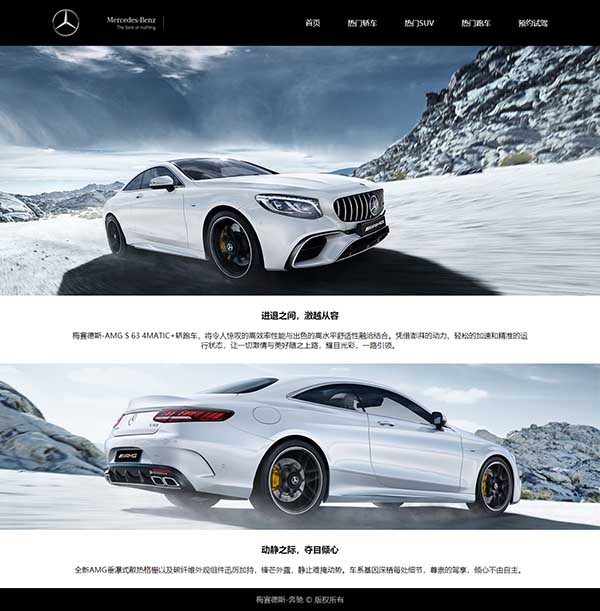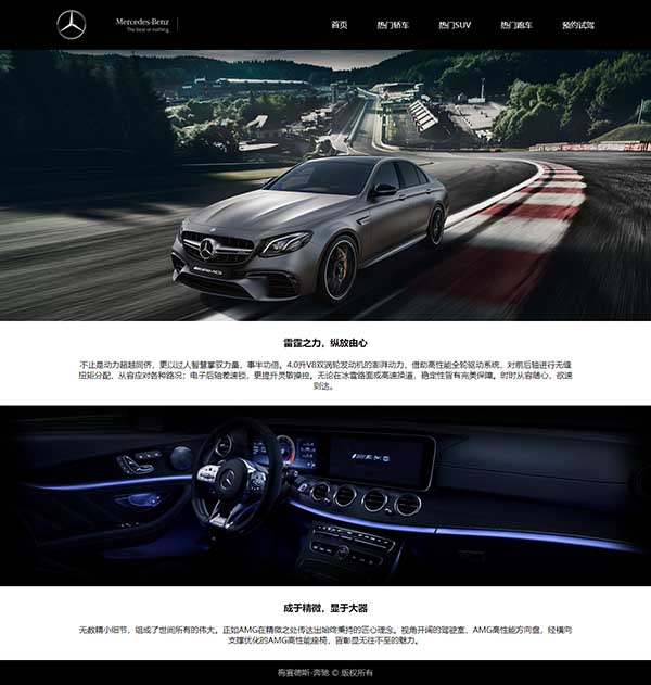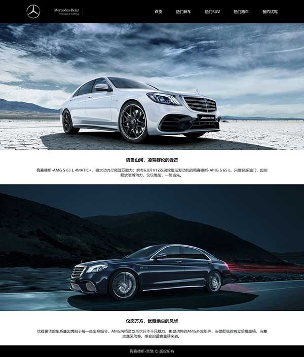 奔馳汽車大學生網頁設計作業,靜態html制作汽車網頁設計代碼模板