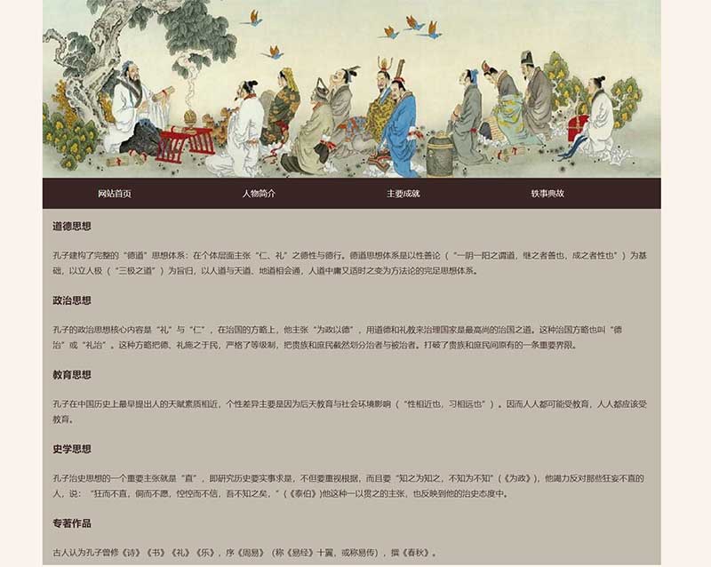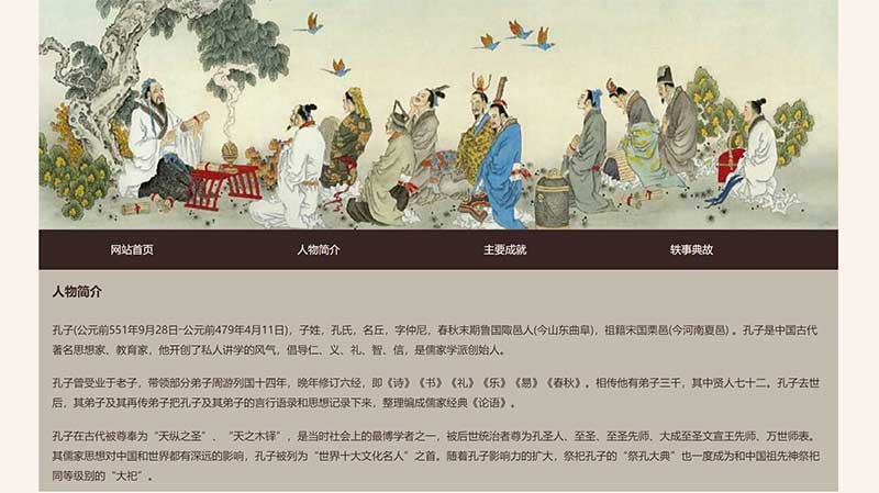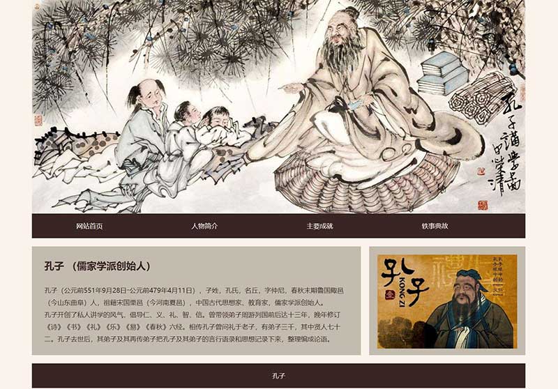 孔子網頁制作成品 學生簡單網頁設計作品 靜態HTML網頁作業模板下載