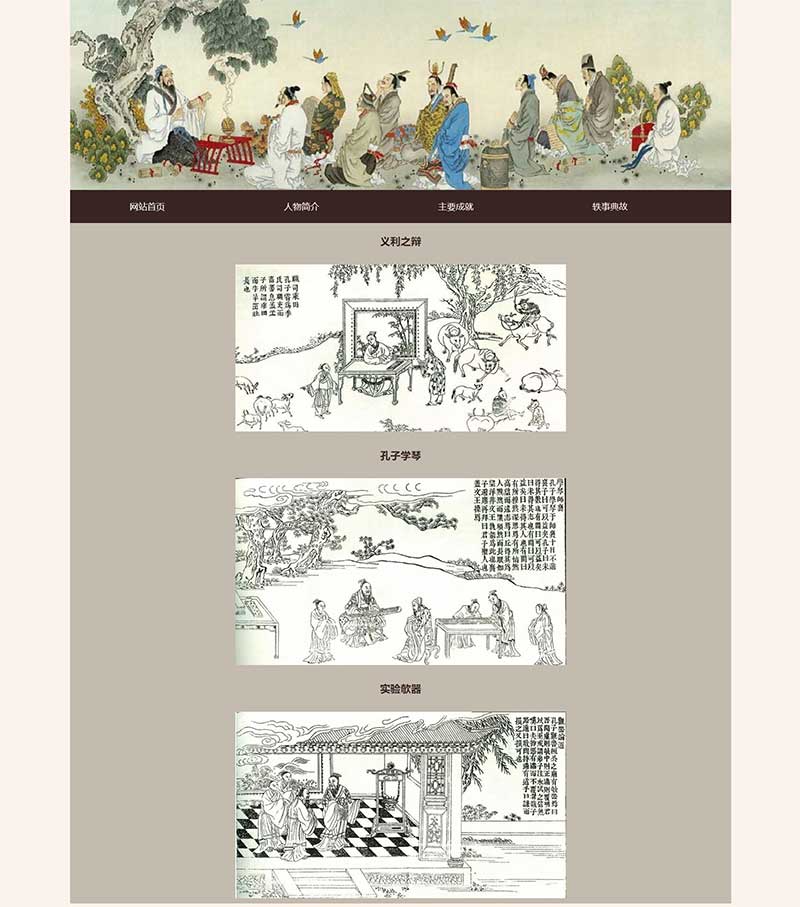 簡單網頁制作作品采用基礎學生水平使用DIV CSS布局設計制作,頁面整體寬度為1200PX,主題為孔子,網頁沒有制作特殊效果,共4個頁面,整體頁面使用CSS設置了古典背景色,首頁與子頁面使用了不同的BANNER圖。