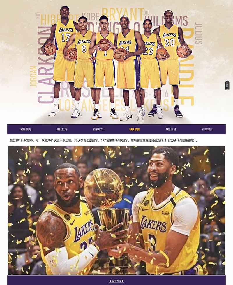 洛杉磯湖人隊(duì)網(wǎng)頁(yè)設(shè)計(jì)模板 大學(xué)生NB... ¥50