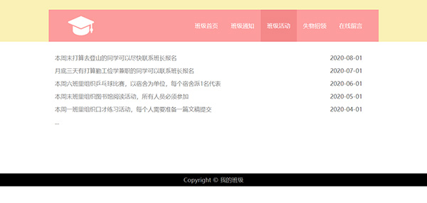 班級網頁設計HTML模板源碼,學生校園靜態網頁設計作業制作