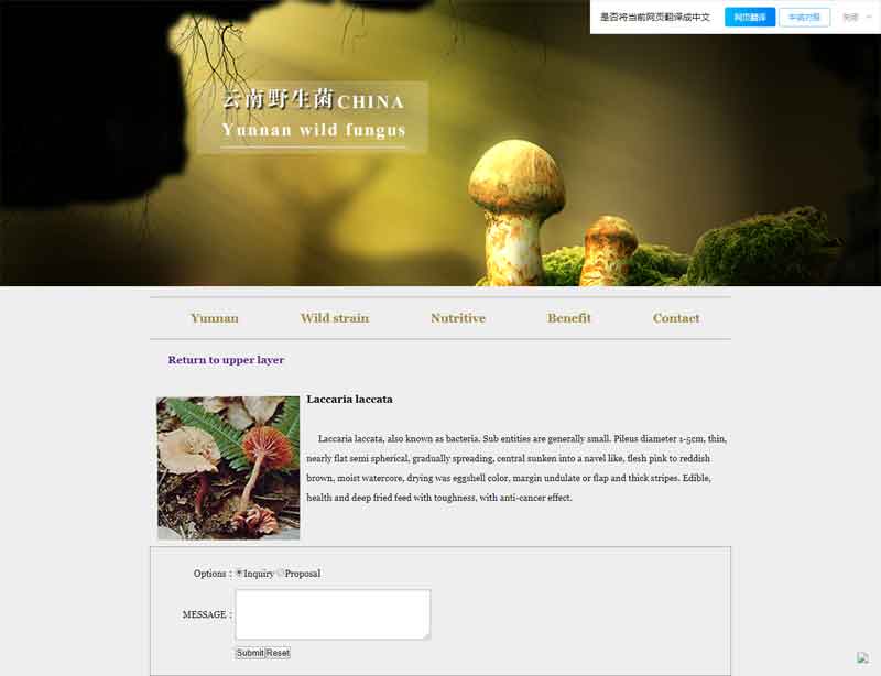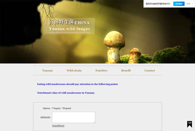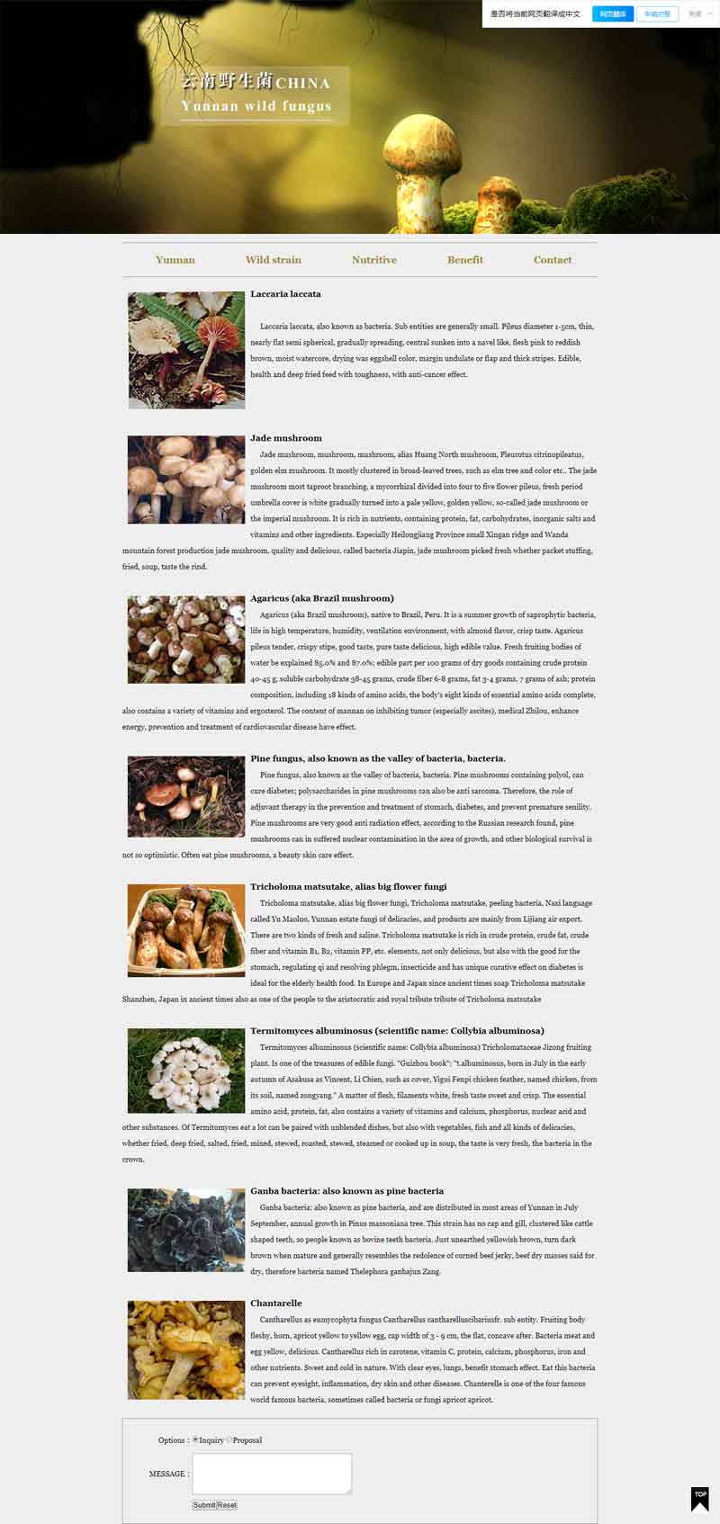 HTML英文留學生網頁設計作業代做 云南野生菌網頁設計源代碼