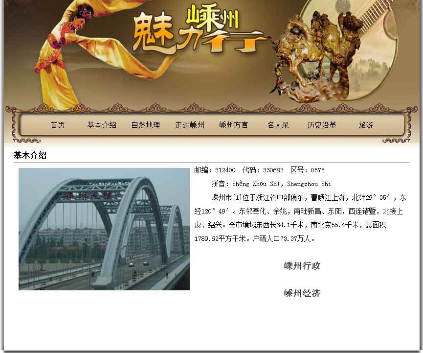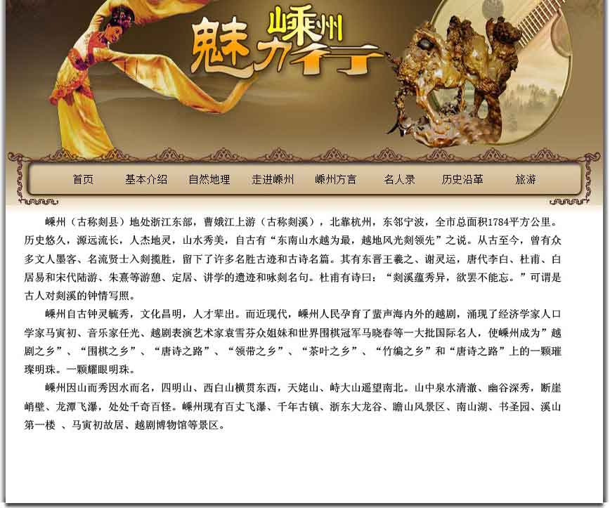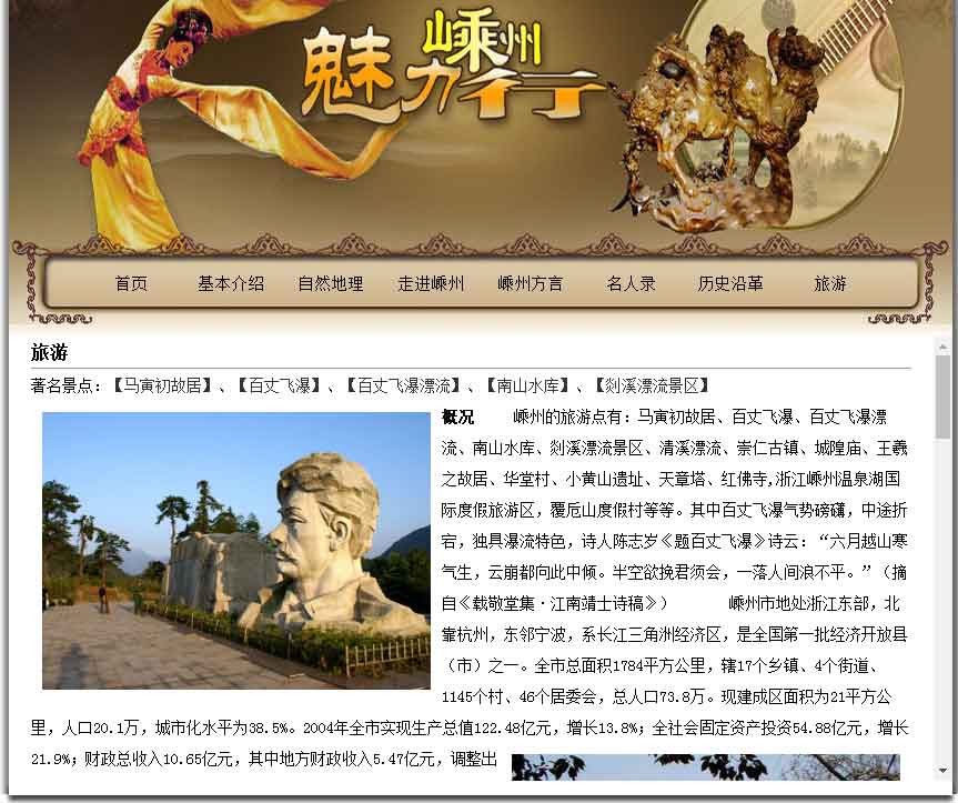 大學生旅游景點嵊州網頁作品成品免費下載DW網頁設計作業