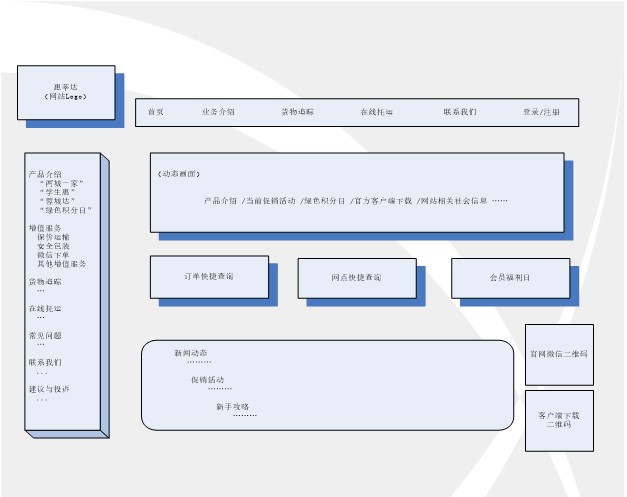快遞題材網頁作業物流配送學生網頁設計作業成品含網頁框架設計稿,采用TABLE布局,DW制作。